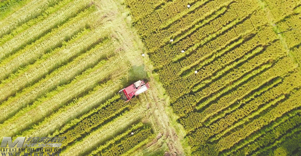 綿陽(yáng)新聞網(wǎng)訊 當(dāng)前,梓潼縣5.1萬(wàn)畝雜交水稻制種進(jìn)入成熟季。各個(gè)種植基地里,沉甸甸的稻穗壓彎了稻稈,陣陣輕風(fēng)卷起金色波浪,一臺(tái)臺(tái)聯(lián)合收割機(jī)在大田里來(lái)回收割,處處一派繁忙的豐收景象。