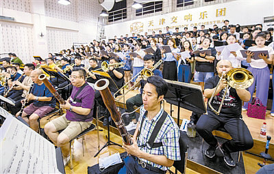 由市委宣傳部、市文化和旅游局主辦,天津交響樂團攜交響詩篇《長城》,將于8月30日登陸國家大劇院。昨天,中央音樂學(xué)院合唱團、北京音樂家協(xié)會合唱團、天津音樂學(xué)院青年合唱團、天津交響樂團(附屬)合唱團與樂團演奏家組成的近300名參演人員,由樂團團長、指揮家董俊杰攜領(lǐng),在天交排練場進行了演出前的首次排練。