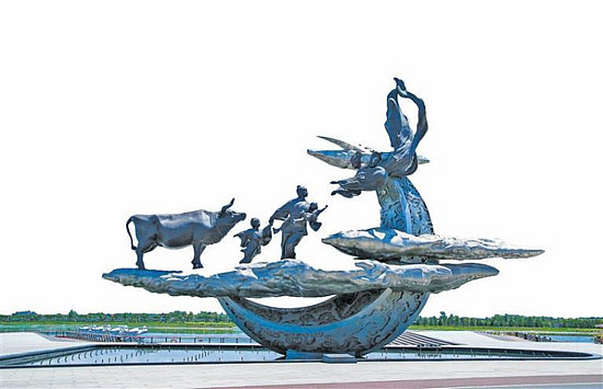 據記載,公元前120年,漢武帝在斗門灃河東面開鑿昆明池,并在池畔東西兩側立牛郎織女石像,隔河相望。這兩尊石像被當地群眾尊稱為“石爺神”“石婆神”,是我國現(xiàn)存最早的與牛郎織女傳說有關的實物遺跡。公元798年,人們開始修廟供奉。宋代以后,關于石婆、石爺的祭祀活動在長安地方志中一直有所記載。至今,當地還保留著牛郎織女農歷正月十七成婚日、七月七相會日兩大廟會活動,形成了獨有的七夕文化傳統(tǒng)。