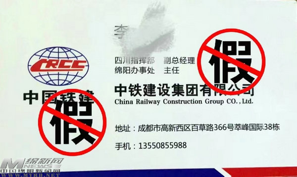近期,中鐵建設(shè)集團有限公司(下稱我公司)發(fā)現(xiàn)不法分子冒充我公司四川指揮部副經(jīng)理、綿陽辦事處主任等職務(wù)在綿陽市違法開展經(jīng)營活動,嚴重損害了我公司企業(yè)及品牌形象,為避免廣大業(yè)界同仁上當受騙,本公司鄭重聲明如下:我公司未在綿陽設(shè)置辦事處,我公司亦不會以項目部或個人名義對外簽訂任何合同。如有任何單位或個人以我公司、我公司項目部或我公司員工名義對外收取費用或者轉(zhuǎn)包的,請勿相信,并立即向公安機關(guān)報案。