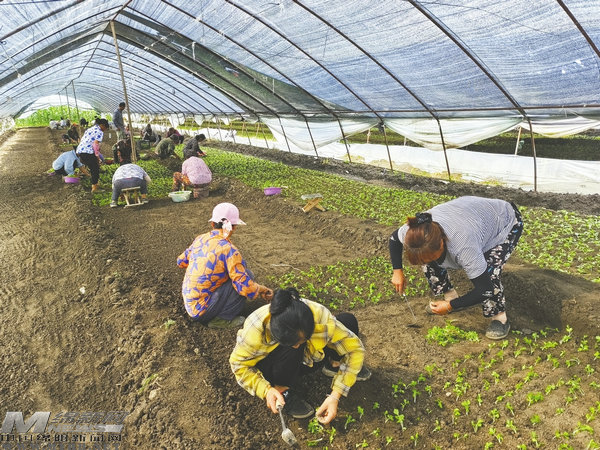 村民栽下芹菜苗