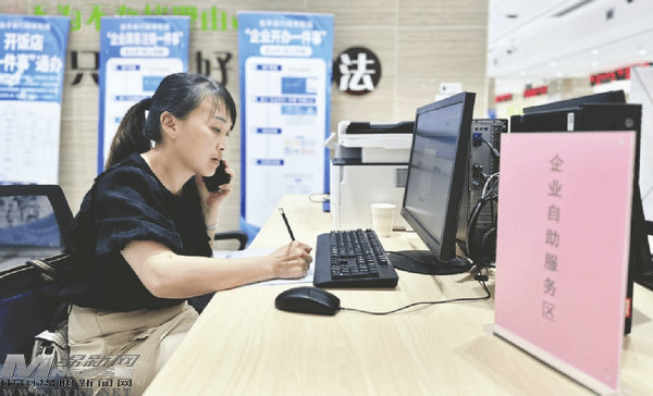 在自助服務(wù)區(qū)工作人員的指導(dǎo)下,趙娟很快完成了資料提交。后臺(tái)審核后,不到半天,趙娟就順利拿到了營(yíng)業(yè)執(zhí)照。下一步,完成印章刻字、銀行開(kāi)戶(hù)等環(huán)節(jié)后,公司就可以正常運(yùn)營(yíng)了。