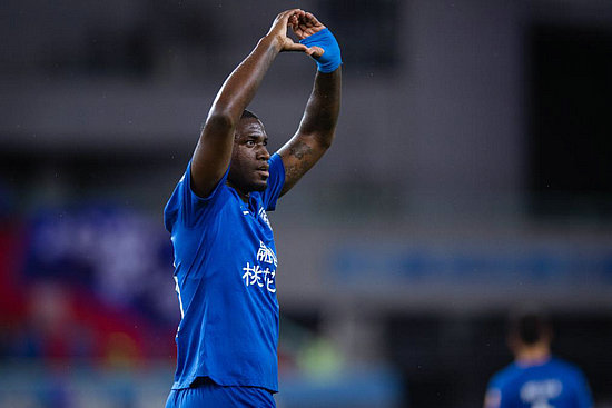 8月27日,武漢三鎮(zhèn)隊球員馬爾康在進球后慶祝。新華社記者 伍志尊 攝