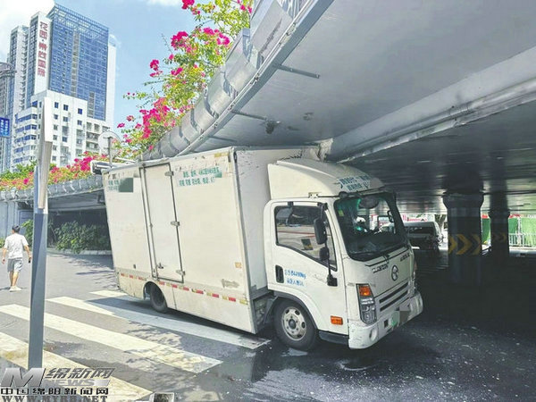 近日,楊某某駕駛一輕型廂式貨車行駛至綿陽(yáng)城區(qū)科委立交橋橋下路段時(shí),因沒(méi)有看限高桿、操作不當(dāng),車輛被卡在橋下,造成車輛以及橋底漆面、落水管等受損的交通事故。