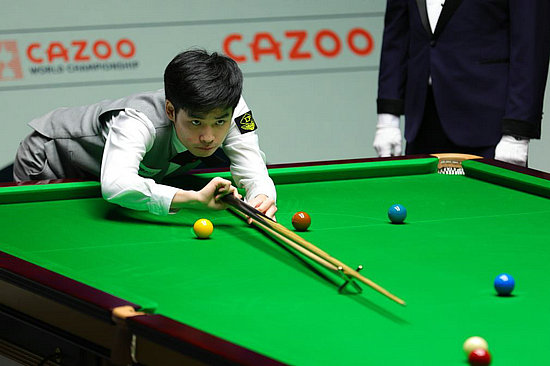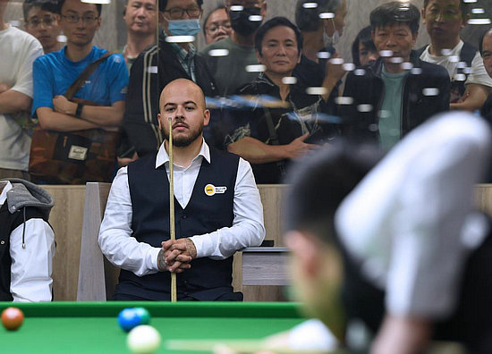 4月29日,斯佳輝在世界斯諾克錦標賽半決賽中。新華社發(fā)(翟政攝)