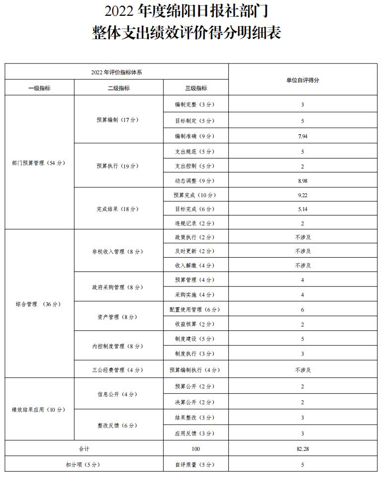 附件:2022年度綿陽(yáng)日?qǐng)?bào)社部門(mén)整體支出績(jī)效評(píng)價(jià)得分明細(xì)表