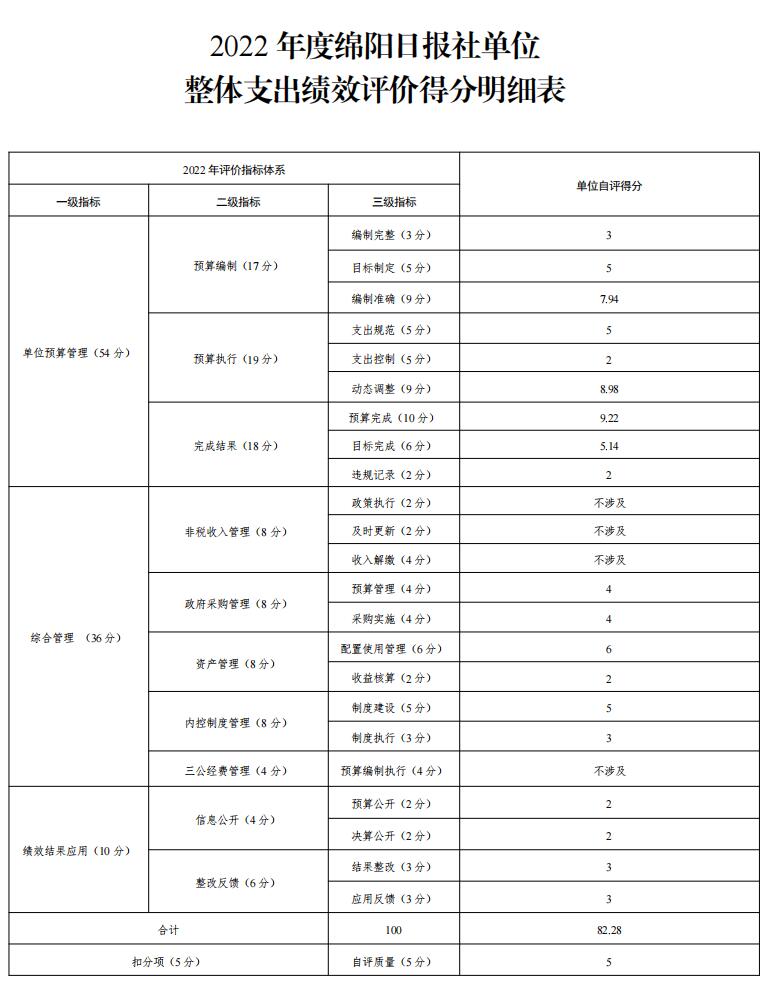 附件:2022年度綿陽日報(bào)社單位整體支出績效評價(jià)得分明細(xì)表