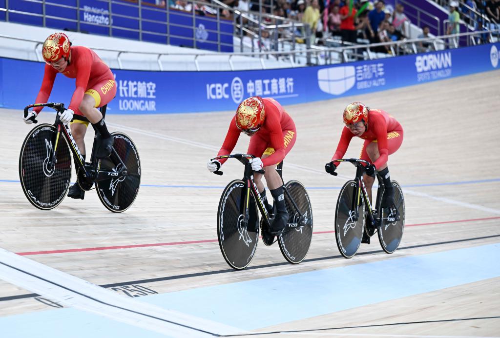 新華社杭州9月26日電(記者馬劍、孫哲)多次刷新亞運(yùn)會(huì)紀(jì)錄,自行車(chē)賽場(chǎng)見(jiàn)證中國(guó)速度!杭州第19屆亞運(yùn)會(huì)場(chǎng)地自行車(chē)項(xiàng)目比賽26日在淳安界首體育中心自行車(chē)館展開(kāi),中國(guó)隊(duì)獲得女子團(tuán)體競(jìng)速賽金牌,并創(chuàng)造新的亞運(yùn)會(huì)紀(jì)錄。中國(guó)隊(duì)獲男子團(tuán)體競(jìng)速賽銀牌,金牌被日本隊(duì)收入囊中。