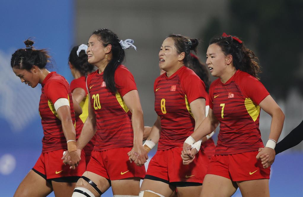 本場(chǎng)比賽中國隊(duì)獲得夢(mèng)幻般開局,谷瑤瑤在第一分鐘的達(dá)陣將全場(chǎng)熱情點(diǎn)燃。上半場(chǎng)進(jìn)行了不到9分鐘,中國隊(duì)完成了4次達(dá)陣,狂攬22分。
