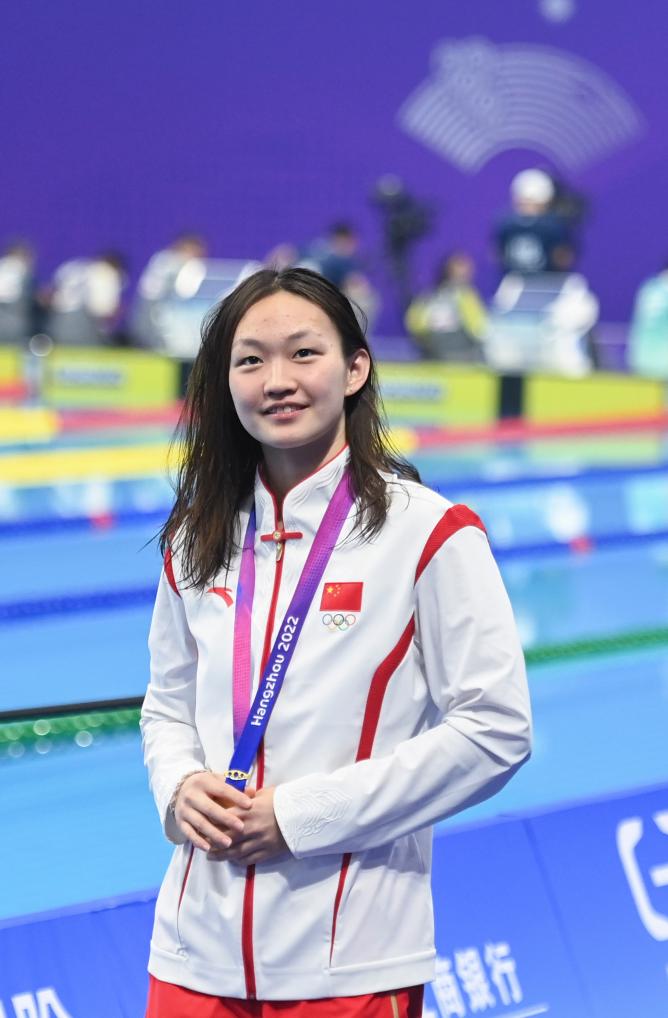 9月26日,中國選手李冰潔在女子400米自由泳決賽頒獎儀式上,她獲得該項目冠軍。新華社記者 黃宗治 攝