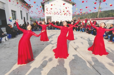 在鹽亭縣岐伯鎮(zhèn)燕來(lái)村,村民們歡聚一堂,觀看自編自導(dǎo)自演的小品、情景劇、舞蹈等反映新時(shí)代新生活的精彩節(jié)目。12時(shí),熱鬧的壩壩宴準(zhǔn)時(shí)開席,燒白、紅燒肉、羊肉湯等一道道充滿年味的菜品端上桌,席間,鄉(xiāng)鄰們共敘鄉(xiāng)情,共話發(fā)展,其樂(lè)融融。