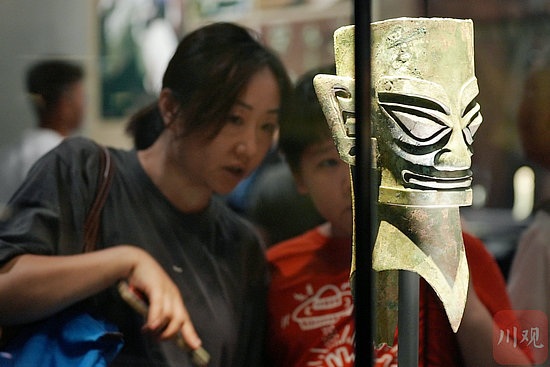 三星堆新館,游客近距離觀賞展品。吳聃 李強(qiáng) 攝