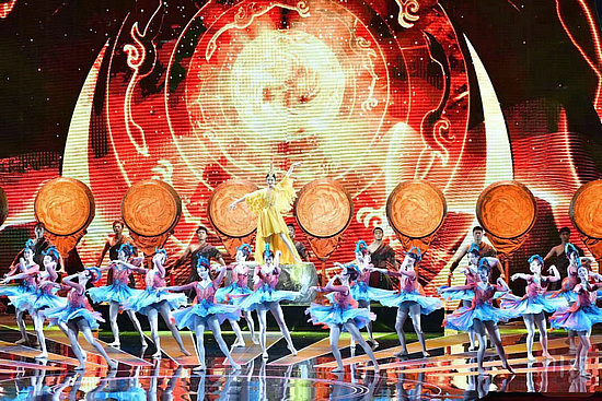 “太陽神鳥”貫穿成都大運(yùn)會開幕式。郝飛 攝