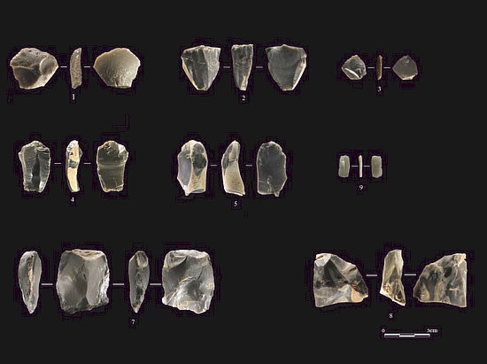 青池遺址第I發(fā)掘區(qū)出土的打制石器(舊石器時代)。天津市文化遺產(chǎn)保護中心供圖