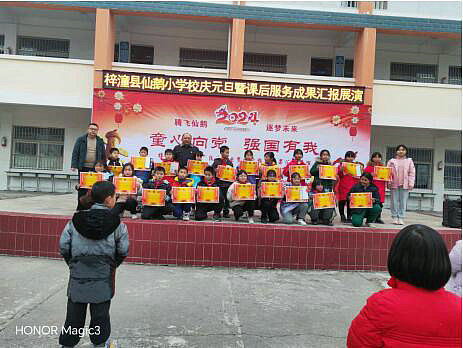 綿陽新聞網(wǎng)訊 為了彰顯學(xué)校校園文化,積極營造健康和諧的育人環(huán)境,豐富廣大師生文化生活,充分展示雙減背景下課后服務(wù)成果。2023年12月28日下午,梓潼縣仙鵝小學(xué)校開展了以“童心向黨,強(qiáng)國有我”為主題的慶元旦暨課后服務(wù)成果匯報(bào)展演活動。