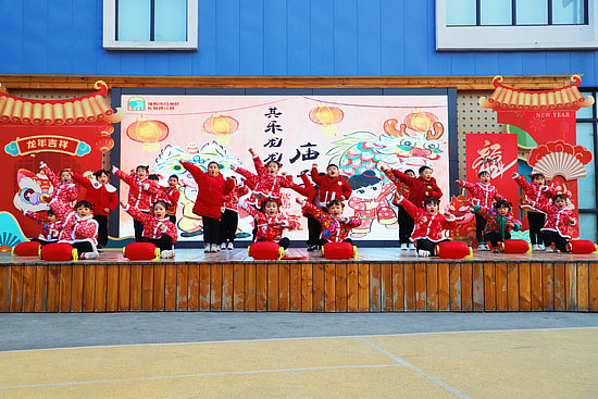 老師們以紅色系為主,在“愛(ài)與陽(yáng)光”的映襯下,以兒童為中心的龍年主題布展靈動(dòng)鮮活地呈現(xiàn)在幼兒園。整個(gè)迎新年活動(dòng)分為歡天喜地慶開(kāi)市、妙趣橫生逛廟會(huì)、為愛(ài)延時(shí)見(jiàn)成長(zhǎng)三個(gè)板塊。
