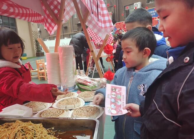 廟會當天,孩子們穿上喜愛的衣服,在會場中穿梭,品味鹽亭美食——火燒饃、涼粉、涼面等,玩民間游戲——套圈、投壺,再一起做花燈、寫福字、掛祈愿帶,希望來年的自己健健康康。