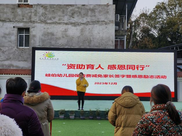 該園組織本期享受資助的家長們召開了2023年秋季學(xué)期學(xué)前教育保教費(fèi)減免簽字儀式暨感恩勵(lì)志教育。本次活動(dòng)由分管領(lǐng)導(dǎo)王芳主持,76名保教費(fèi)減免幼兒家長共同參與本次活動(dòng)。