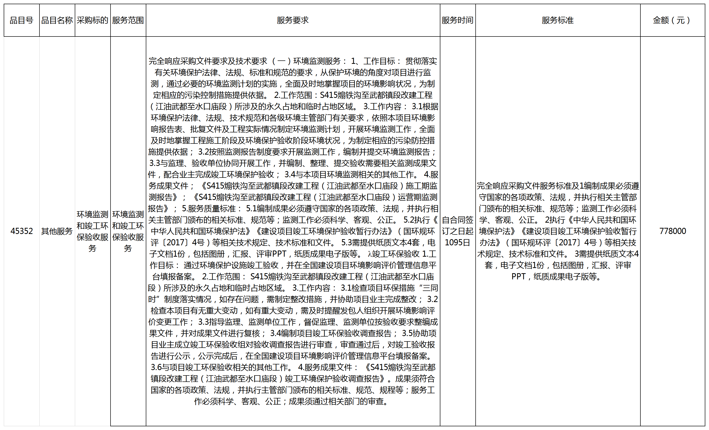 二、項(xiàng)目名稱:S415煽鐵溝至武都鎮(zhèn)段改建工程(江油武都至水口廟段)水土保持監(jiān)測(cè)、水土保持設(shè)施竣工驗(yàn)收技術(shù)服務(wù)及環(huán)境監(jiān)測(cè)和竣工環(huán)保驗(yàn)收服務(wù)