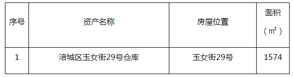 綿陽市糧油集團有限公司營銷分公司現(xiàn)將公司代管位于涪城區(qū)玉女街29號倉庫資產面向社會進行公開競價招租(詳見競租清單表),現(xiàn)將有關事宜公告如下: