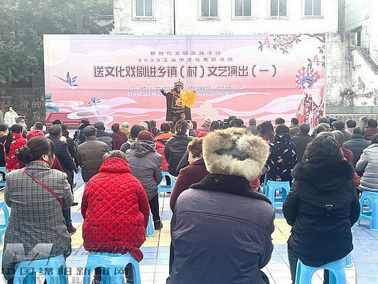 每到一地,演職人員為基層群眾奉上了歌舞、快板、川劇變臉等精彩節(jié)目(如圖)。室外雖然天氣寒冷,但現(xiàn)場(chǎng)洋溢著熱烈的氣氛。優(yōu)美的舞姿、經(jīng)典的唱腔,還有令人眼花繚亂的川劇變臉等節(jié)目,激起臺(tái)下喝彩聲、鼓掌聲不斷。
