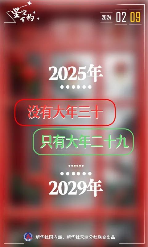 近日一則“未來5年都沒有大年三十”的消息引發(fā)公眾關注。消息稱,2024年2月9日是近年來最后一個大年三十,因為從2025年起至2029年都沒有大年三十,只有大年二十九。天文科普專家表示,大年三十時有時無是正常歷法現(xiàn)象,系農(nóng)歷大小月所致。