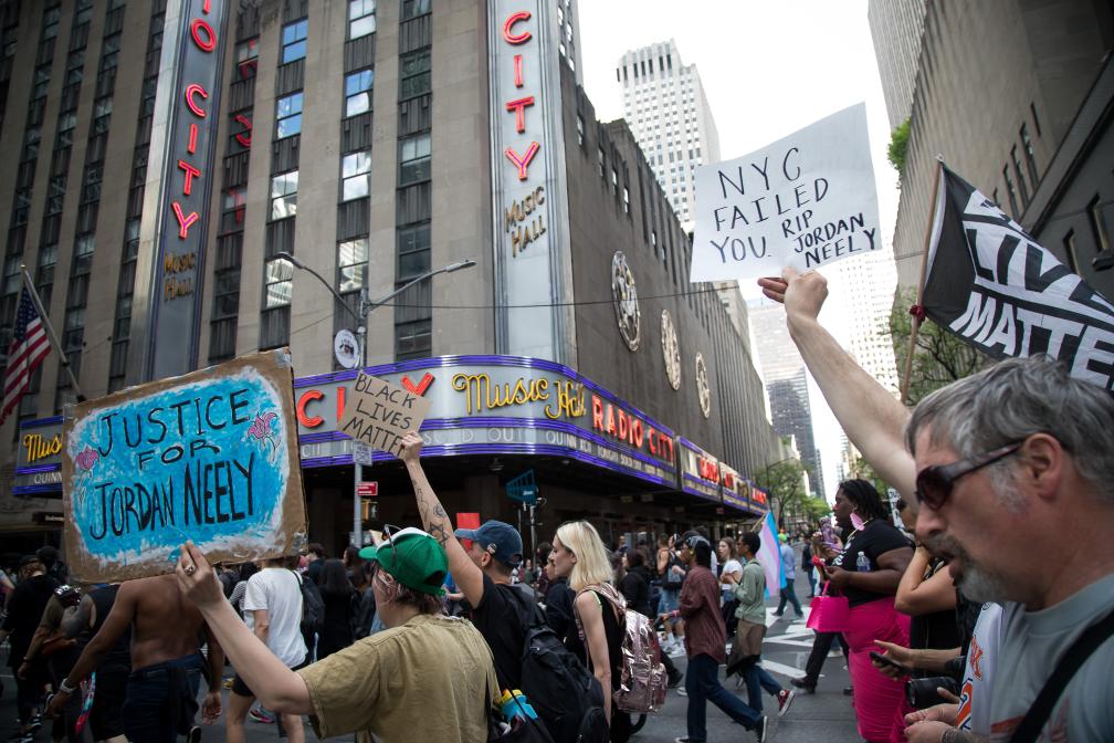 2023年5月6日,人們?cè)诿绹?guó)紐約參加抗議。新華社發(fā)(郭克攝)