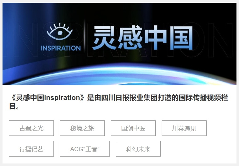 《靈感中國(guó)Inspiration》是由四川日?qǐng)?bào)報(bào)業(yè)集團(tuán)打造的國(guó)際傳播視頻欄目。