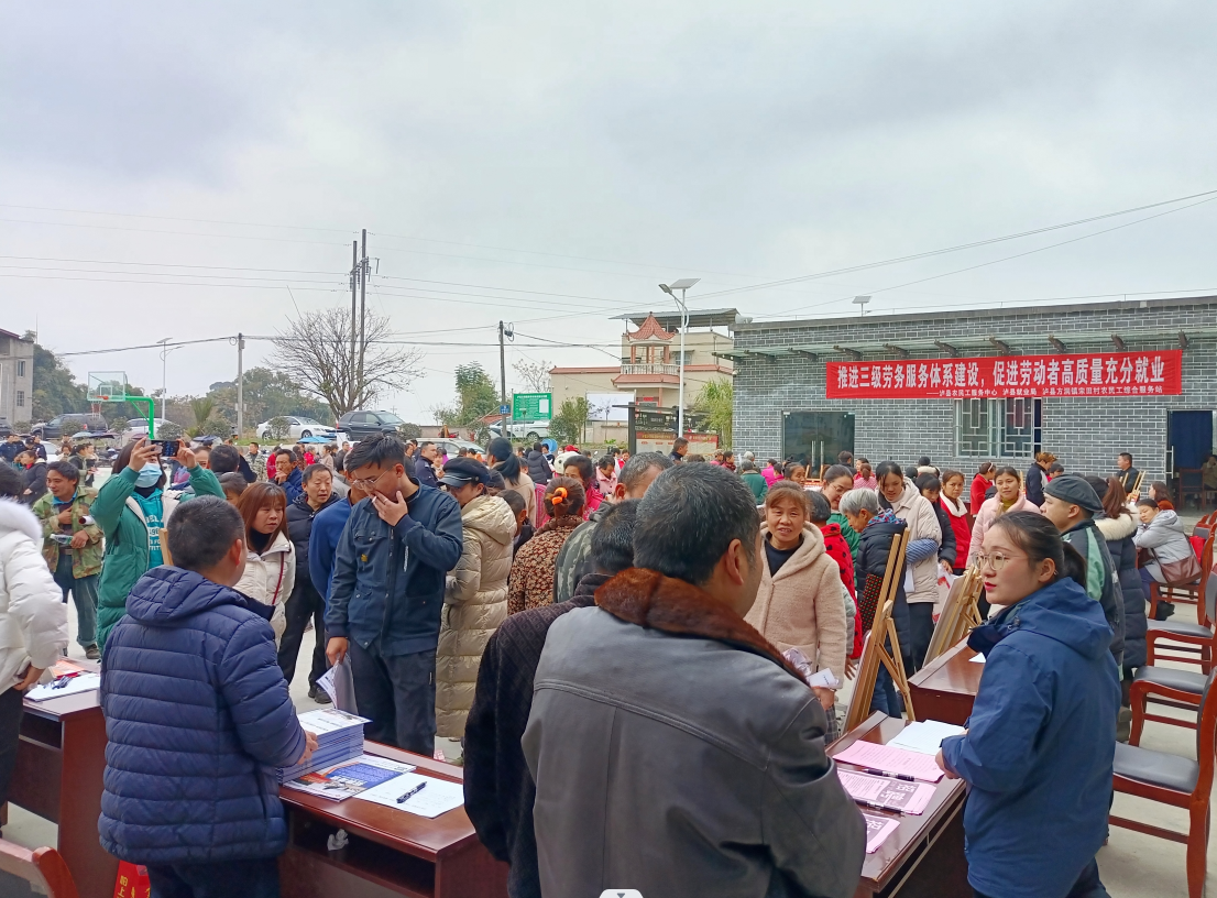 1月16日,在瀘縣方洞鎮(zhèn)宋田村農(nóng)民工綜合服務(wù)站舉行的招聘會現(xiàn)場。 洪林 攝