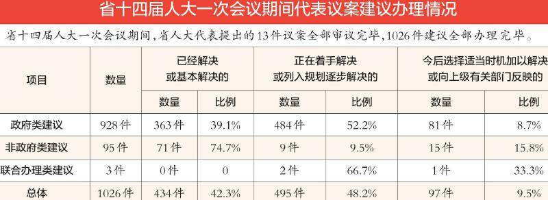 代表議案建議傳遞著人民的呼聲、凝聚著人民的期盼。省人大常委會(huì)堅(jiān)持以人民為中心,牢牢把握全過程人民民主的深刻內(nèi)涵,創(chuàng)新工作機(jī)制,提升辦理質(zhì)量,把議案建議辦理工作作為回應(yīng)民生訴求、發(fā)揮代表作用、促進(jìn)經(jīng)濟(jì)發(fā)展、聚民意惠民生的重要途徑。省十四屆人大一次會(huì)議期間,省人大代表提出的13件議案已全部審議完畢,1026件建議也全部辦理完畢。議案建議“開花結(jié)果”,推動(dòng)解決了一大批人大代表關(guān)注、人民群眾關(guān)心的重點(diǎn)難點(diǎn)問題。