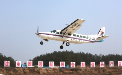 時值習近平總書記視頻連線綿陽北川石椅村一周年之際,2024年1月18日12時許,伴隨著發(fā)動機轟鳴聲,一架塞斯納208型飛機騰空而起,從北川飛往成都淮州機場,實現(xiàn)了北川永昌機場首飛。