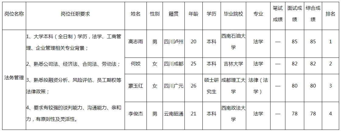 根據(jù)成都微精電機(jī)股份公司發(fā)布的招聘公告及招聘相關(guān)規(guī)定,經(jīng)筆試、面試等程序,現(xiàn)將筆試(面試)成績予以公示。