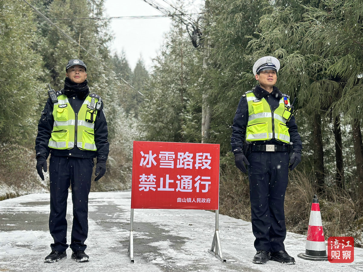 在擂鼓鎮(zhèn)擂禹路段,民警在重要路口設(shè)卡執(zhí)勤,引導(dǎo)群眾將車輛停放在山下的安全地點。在景家山路段,路面積雪較厚,民警在各路段有序開展除雪防滑作業(yè),清掃路面積雪和冰塊。