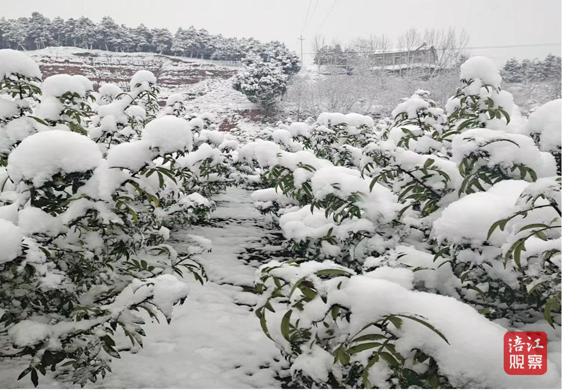 鹽亭文通鎮(zhèn)塔三村,村黨總支書記蒙紹官帶領(lǐng)村兩委干部、志愿者,幫助農(nóng)戶及時去除藤椒樹上的積雪,減輕積雪對枝條的壓傷和凍害。