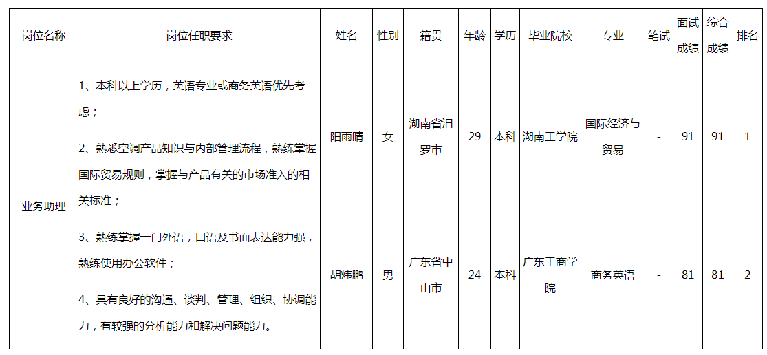根據(jù)中山長(zhǎng)虹電器有限公司發(fā)布的招聘公告及招聘相關(guān)規(guī)定,經(jīng)面試程序,現(xiàn)將面試成績(jī)予以公示。