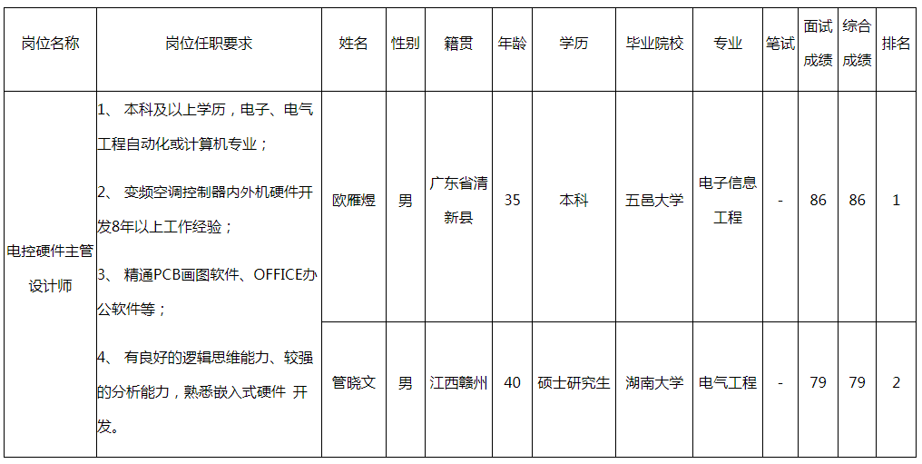 根據(jù)中山長虹電器有限公司發(fā)布的招聘公告及招聘相關(guān)規(guī)定,經(jīng)面試程序,現(xiàn)將面試成績予以公示。