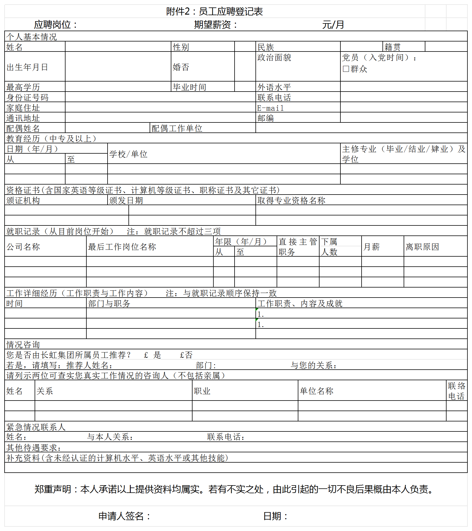 ?。ㄎ澹┨貏e聲明:應(yīng)聘者應(yīng)對(duì)提交材料的真實(shí)性負(fù)責(zé),如有弄虛作假,立即取消聘用資格并追究其法律責(zé)任。