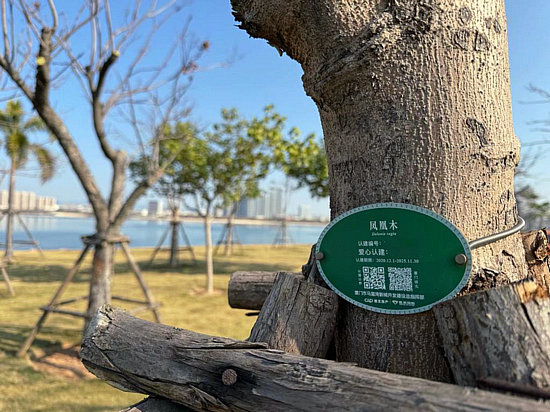 島上,不時有飛鳥在鳳凰木樹梢停留。這些鳳凰木由廈門市民認(rèn)養(yǎng),樹干上掛著“認(rèn)養(yǎng)牌”。“我是馬鑾灣新城的建設(shè)者,想以認(rèn)養(yǎng)樹木的形式讓這份守護(hù)傳承下去。”鳳凰木認(rèn)養(yǎng)者、市民吳玉梅說,她2021年認(rèn)養(yǎng)了樹木,時常在周末帶著孩子來給樹木澆澆水,給孩子講述馬鑾灣生態(tài)修復(fù)故事。