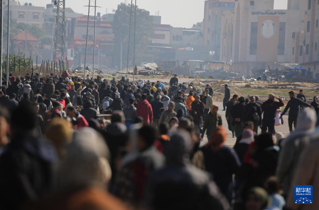 1月26日,在加沙地帶南部城市汗尤尼斯,人們逃離家園。新華社發(fā)(哈立德·奧馬爾攝)