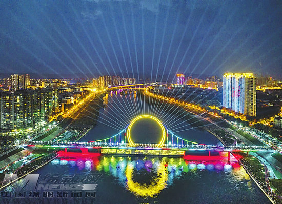 城市因環(huán)境而靚,生活因品質(zhì)而美。近年來,江油圍繞城鄉(xiāng)建設(shè)總體部署,按照“工業(yè)強(qiáng)市、文旅興市、開放活市、生態(tài)美市”的城市發(fā)展理念,以建設(shè)宜居、宜游、宜商、宜業(yè)的生態(tài)文明城市為目標(biāo),打造金外灘跨涪江人行橋城市新地標(biāo),其獨(dú)特的“故鄉(xiāng)明月”造型成為一道亮麗的城市風(fēng)景線,催生城市活力。