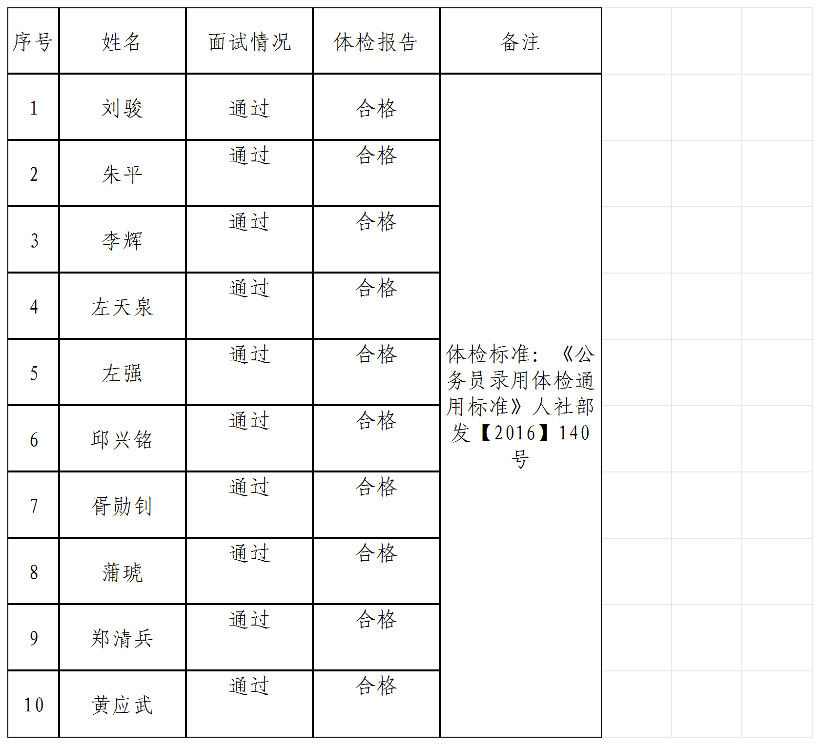根據(jù)《綿陽市市政設(shè)施維護(hù)中心關(guān)于公開招聘編外人員的公告》,經(jīng)1月8日至12日現(xiàn)場(chǎng)和網(wǎng)上報(bào)名,通過資格審查、面試考核、體檢后,現(xiàn)將聘用人員名單公示如下: