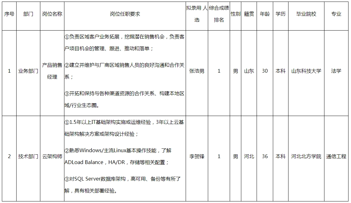 根據(jù)四川長虹佳華信息產(chǎn)品有限責(zé)任公司發(fā)布的招聘公告及招聘相關(guān)規(guī)定,經(jīng)面試、考察、體檢等程序,擬錄用張浩男、李賀鋒同志到四川長虹佳華信息產(chǎn)品有限責(zé)任公司工作,現(xiàn)予以公示,具體情況如下: