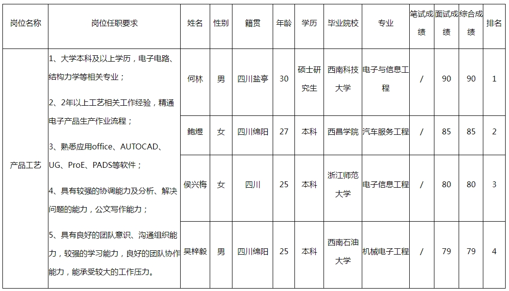 根據(jù)四川長虹電器股份有限公司(多媒體公司)發(fā)布的招聘公告及招聘相關(guān)規(guī)定,經(jīng)面試等程序,現(xiàn)將面試成績予以公示。