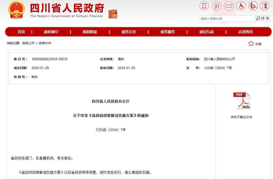 四川新聞網(wǎng)-首屏新聞成都1月31日訊 據(jù)四川省人民政府網(wǎng)站消息,近日,四川《省政府政策解讀實施方案》正式印發(fā),要求政策性文件公布時,要同步組織開展解讀,及時全面闡釋政策。政策性文件執(zhí)行過程中,要密切跟蹤執(zhí)行效果,關注網(wǎng)絡輿情,有針對性地釋疑解惑,推動落地實施。全文如下: