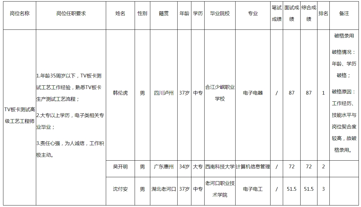 根據(jù)四川愛聯(lián)科技股份有限公司發(fā)布的招聘公告及招聘相關(guān)規(guī)定,經(jīng)筆試、面試等程序,現(xiàn)將筆試(面試)成績予以公示。