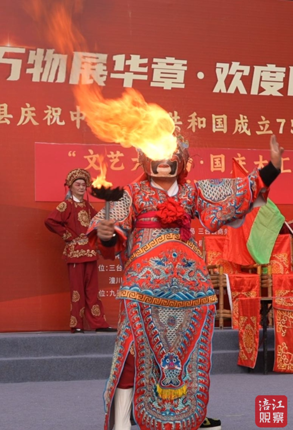 好戲不斷,川劇深邃的戲腔悠然回蕩,吸引了上千戲迷和聽眾。《穆桂英掛帥》、川劇吐火、川劇旦角水袖表演等經(jīng)典戲曲劇目和川劇絕技表演,為觀眾帶來了一場視覺與聽覺的文化盛宴,領略了川劇獨有的藝術魅力與深厚底蘊。