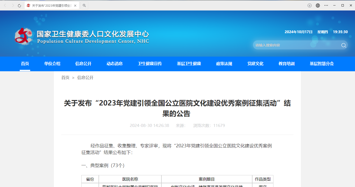 近日,由全國醫(yī)院黨建工作指導(dǎo)委員會辦公室、中國衛(wèi)生健康思想政治工作促進(jìn)會聯(lián)合指導(dǎo)國家衛(wèi)生健康委人口文化發(fā)展中心開展的“2023年黨建引領(lǐng)全國公立醫(yī)院文化建設(shè)優(yōu)秀案例征集活動”,評選出典型案例73個、優(yōu)秀案例189個。其中,綿陽市中心醫(yī)院、綿陽市婦幼保健院(市兒童醫(yī)院)、綿陽市中醫(yī)醫(yī)院、綿陽市第一人民醫(yī)院(四0四醫(yī)院)、綿陽市第三人民醫(yī)院、江油市人民醫(yī)院、江油市第二人民醫(yī)院7家公立醫(yī)療機(jī)構(gòu)選送的文化建設(shè)案例作品入選“優(yōu)秀案例”。