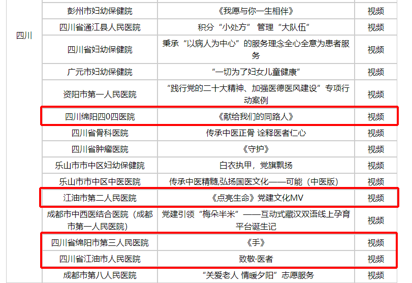 綿陽市第一人民醫(yī)院(四0四醫(yī)院)入選優(yōu)秀案例視頻作品為《獻(xiàn)給我們的同路人》。