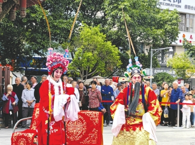 國慶期間,天青苑川劇團(tuán)在鐵牛廣場(chǎng)演出,吸引眾多市民圍觀