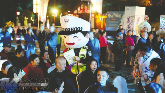 交警裝扮成卡通形象宣傳交通安全知識(shí)